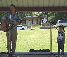 2011 marked the first time that a great-grandchild of Woody Guthrie performed a solo set when Krishna Guthrie (Arlo Guthrie's grandson; Abe Guthrie's son) took the stage at the Brick Street Cafe on Thursday afternoon on his great-grandfather's 99th birthday. Krishna Guthrie has been attending the festival since he was ten or twelve years old and says, "Every time I come here it's like a history lesson."[63] A familial theme seemed to carry through the festival with Butch Hancock being joined on stage by his 13-year-old son, Rory, and Kevin Welch performing in tandem with his son, Dustin.[61]