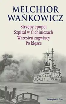 Wrzesień żagwiący (English: Scorching September) is a 1947 book of literary reportage written by the Polish historian and political journalist Melchior Wańkowicz. The book is a collection of analytical thinking stories written by Wańkowicz in the early 1940s, while the author was in exile. Following the invasion of Poland, he left the country in late September 1939 for Romania, later moving to Cyprus, BritishPalestine, Italy, and finally, to London. Wrzesień żagwiący gives a vivid account of the Polish September Campaign; its title refers to the fact that Nazi Germany, together with the Soviet Union invaded the Second Polish Republic jointly in September 1939. The book was first published in 1947, in London, by Gryf Publishing House.[1] It was reprinted in 1990 by Polonia Publishing House, while several stories from the book were printed separately, with the most popular one, Westerplatte, having been printed in 1959, 1960, 1963, 1967, 1968, 1971, 1989, and 1990. In August 2009, Warsaw publishing house Prószyński i Spółka reprinted the book in the third volume of collected works by Wańkowicz. In this volume, Wrzesień żagwiący is published together with other war-related stories, such as Strzępy epopei, Szpital w Cichiniczach, and Po klęsce.[2]