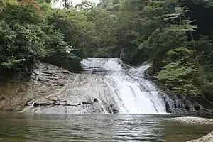 The Yōrō River (養老川, Yōrōgawa) is a river in Chiba Prefecture, Japan. It is 73.4 kilometers (45.6 mi) in length and has a drainage area of 260 square kilometers (100 sq mi). Under the Rivers Act of 1906 the Yōrō is designated as a Class 2 River. The Yōrō originates near Mount Kiyosumi on the border of Amatsukominato area of Kamogawa and Ōtaki, and then passes through Ōtaki and Ichihara.[1] The Yōrō Ravine and Awamata Falls are located in the upper part of the Yōrō, and it meets the Koshikiya River, the Heizō River, and the Uchida River at its midpoint. Land around the middle and lower parts of the Yōrō have been developed for rice production. The river flows through significant parts of the Bōsō Hill Range before it empties into Tokyo Bay in the Goi and Iwazaki districts of Ichihara. Land reclamation at the mouth of the Yōrō is a component of the Keiyō Industrial Zone.[2] The Kominato Line of the Kominato Railway roughly follows the path of the Yōrō and provides access to many of the tourist destinations along the river, including mountains, waterfalls, and an onsen hot spring.