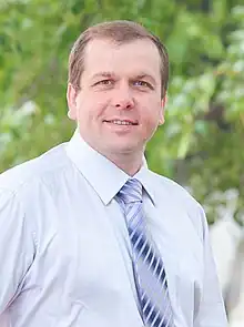 Yevgeny Valeryevich Domozhirov (Russian: Евгений Валерьевич Доможиров; born 28 July 1974) is a Russian politician. He served as a deputy in the Legislative Assembly of Vologda Oblast from 2011 to 2012.[1] He is also known as a former coordinator of Alexei Navalny's regional headquarters in Vologda in 2018 and member of the committee on local self-government issues of the Parliamentary Assembly of the Northwest of Russia. He was the chairman of the Council of the Vologda Regional Public Movement for Human Rights "Together: Freedom, Property, Responsibility".[2] Domozhirov was a member of the A Just Russia — For Truth party until August 24, 2012. Since January 2015, he has been a member of the Central Council of the Russia of the Future party.[3][4]