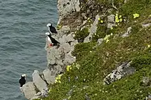 Horned puffins on a Nunivak Island sea cliff, August 2008